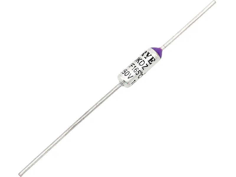 Bezpiecznik termiczny z wyprowadzeniami osiowymi. Stosowany do ochrony urządzeń przed uszkodzeniem pod wpływem nadmiernej temperatury. Aktywacja bezpiecznika następuje w momencie gdy temperatura otoczenia przekroczy punkt topnienia elementu zabezpieczającego.