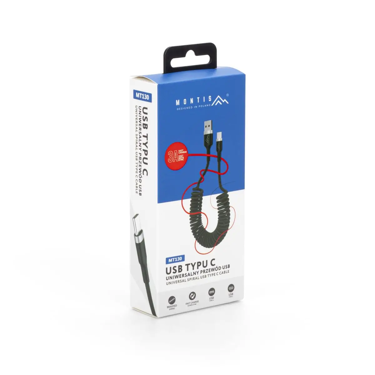 Kabel USB typu A - USB typu C 1,5m (spirala) Montis MT130.