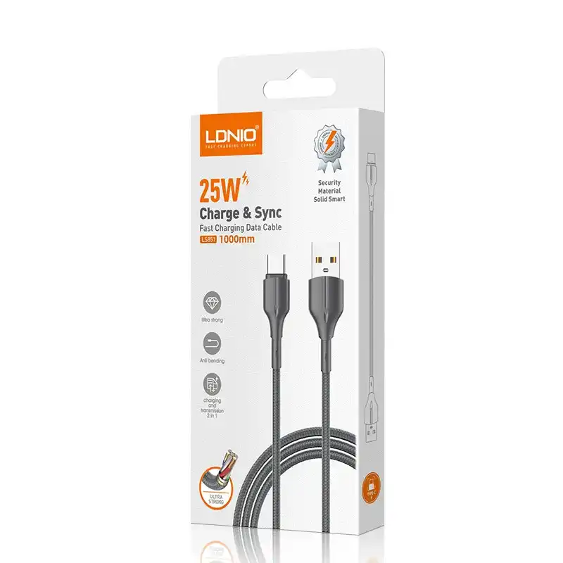 Kabel USB - micro USB 25W w oplocie, do ładowania i przesyłu danych.