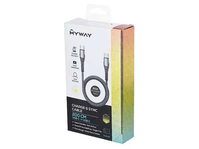 Kabel USB wtyk typ C - wtyk typ C ,PD, 2m ,65W, mikrofibra