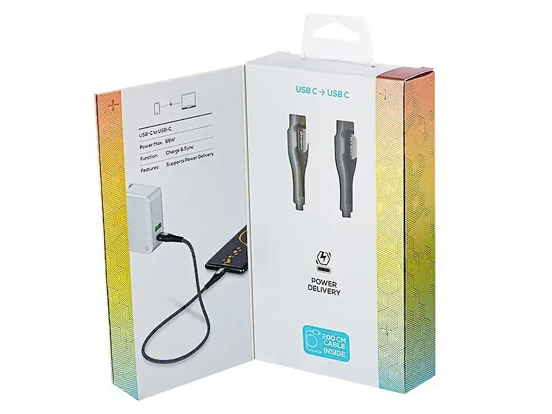 Kabel USB wtyk typ C - wtyk typ C, PD, długość 2m, max 65W, oplot z mikrofibry.