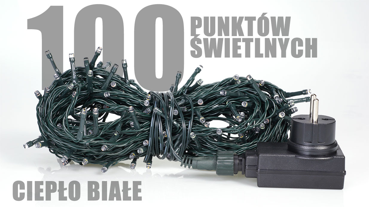 Lampki choinkowe 100 LED białe ciepłe, zewnętrzne, IP44, 3W, programator