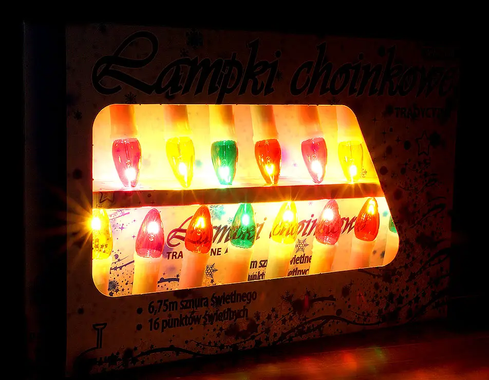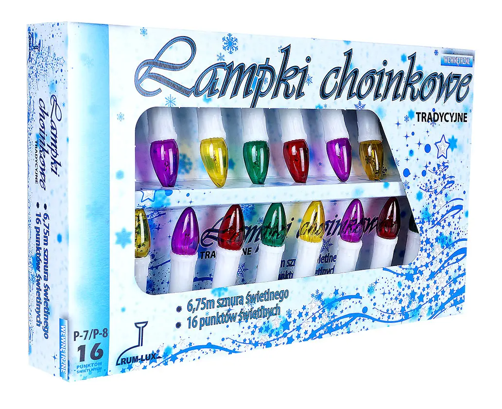 Wspomnienie lat dziecięcych to podstawowa cecha tych lampek choinkowych. Tradycyjne lampki zapinane na żabki, 16 punktów świetlnych, rozdzielana wtyczka umożliwiająca łatwe rozłożenie lampek na choince, kolorowe żarówki o mocy 3W to nastrojowe oświetlenie Twojego wnętrza lub 5W to choinka mieniąca się pełnią barw odbitych w Twoich bombkach.