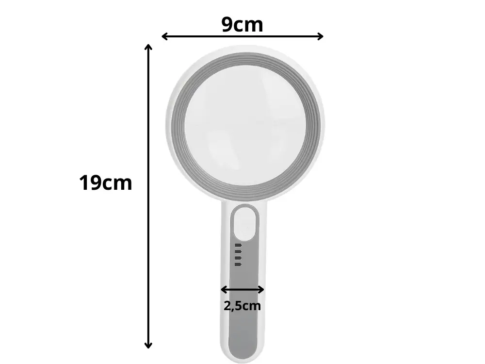 Poręczna lupa o 5-krotnym i 12-krotnym powiększeniu to niezastąpione narzędzie do czytania drobnego druku, oglądania monet, znaczków, biżuterii czy wykonywania precyzyjnych prac. Dzięki wbudowanym 16 diodom LED zapewnia doskonałe oświetlenie nawet w ciemnym pomieszczeniu, nie męcząc przy tym oczu.