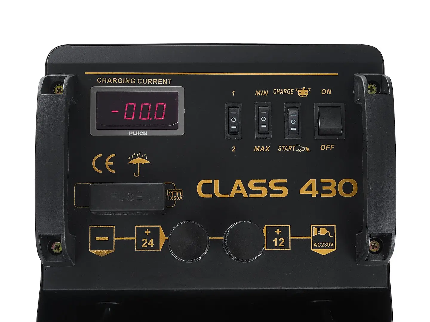 Urządzenie rozruchowe serii Class 430 przeznaczone do wspomagania rozruchu oraz ładowania akumulatorów ołowiowo-kwasowych o napięciu 12V lub 24V, stosowanych m. in. w samochodach ciężarowych oraz maszynach budowlanych, a także do rozruchu silników spalinowych w przypadku całkowitego rozładowania akumulatora lub bardzo niskich temperatur otoczenia. Prostownik wyposażony został w wyłącznik termiczny, który w momencie przegrzania się transformatora wyłącza układ.