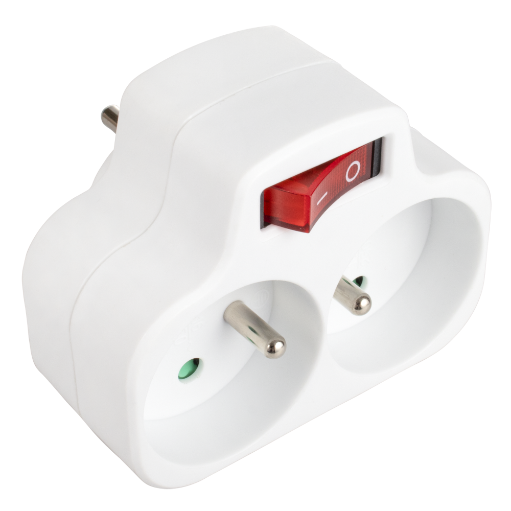 Rozgałęźnik posiada 2 gniazda z uziemieniem i spełnia wszelkie normy europejskie CE. Rozgałęźnik wyposażony jest w włącznik.