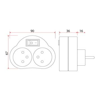 Rozgałęźnik sieciowy Z-8 z wyłącznikiem, 2 gniazda